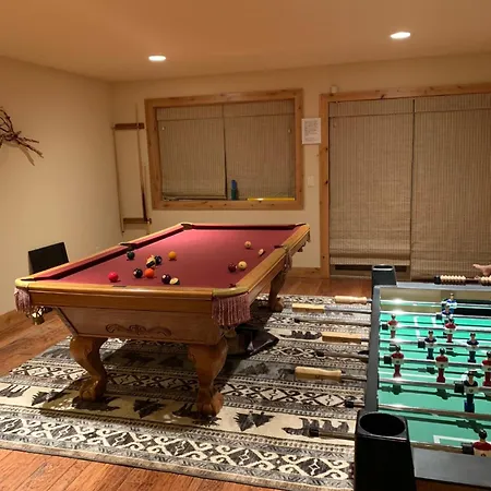 Along with a stone fireplace, Brand New Upscale Home, Hot Tub, Foosball includes a flat-screen TV with satellite channels.